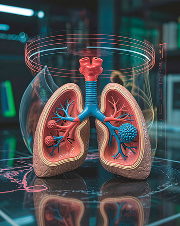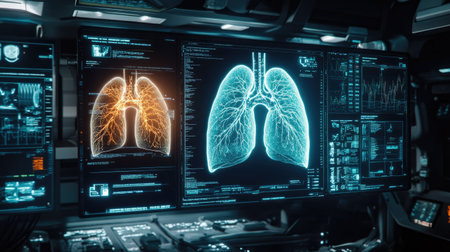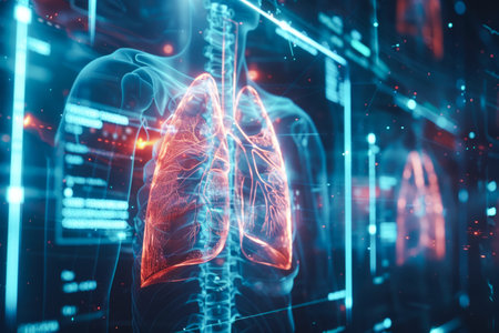 Advanced medical technology: detailed visualization of human lungs in a futuristic interface
