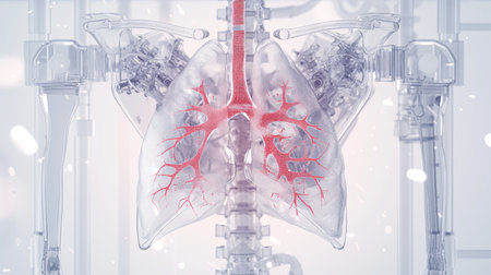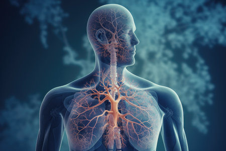 A digital rendering of the human respiratory system, highlighting lungs and bronchial tubes