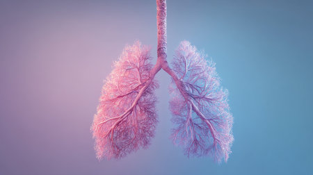 This artistic representation features lungs depicted with a striking gradient background, emphasizing the intricate structure of the pulmonary system.