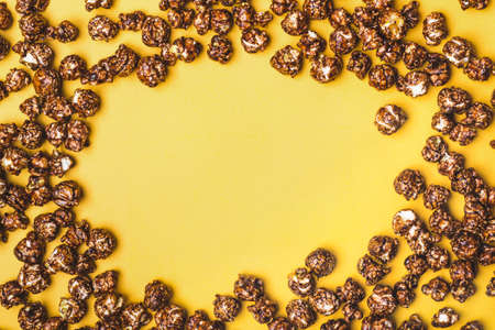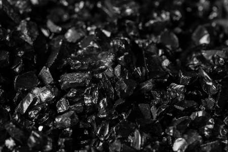 An abstract close-up of golden powder and crumbs scattered on a dark background, creating a textured and visually intriguing composition with a dramatic effect.