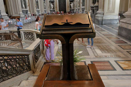 Rome, Italy - August 16, 2015: Inside the hall of the Papal Archbasilica of St. John in the Lateran near the altar