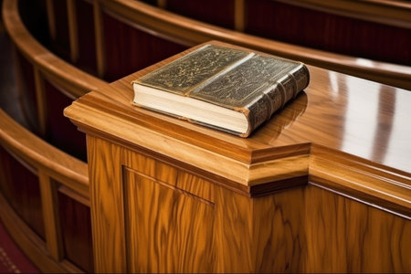 close-up of a glossy wooden pulpit with bible, created with generative ai