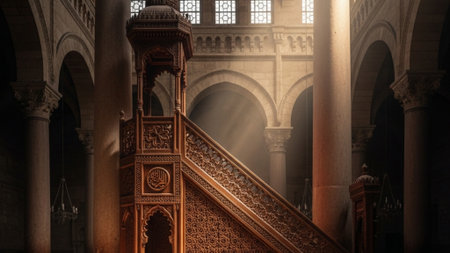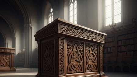 pulpit beautifully carved from dark wood, created with generative ai