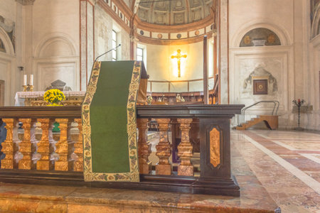 Milan, Italy - November 15, 2016: altar with bible lectern of church Santa Maria Delle Grazie.