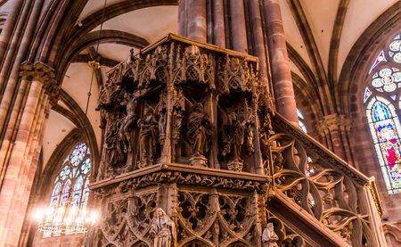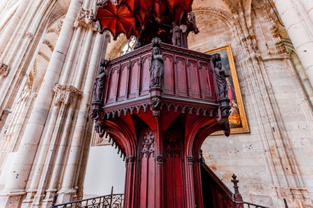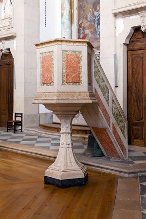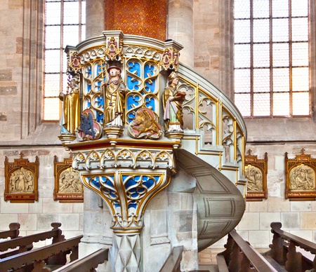 Pulpit inside the Cathedral of Bolzano, a late-Gothic church in Bolzano-Bozen, South Tyrol, Italy