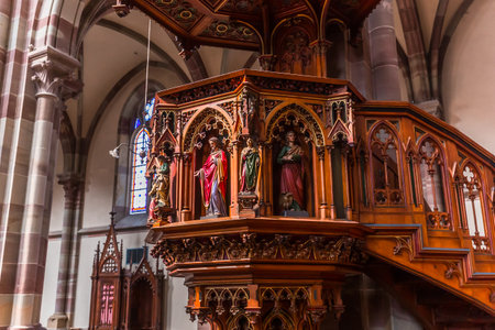 OBERNAI, FRANCE, SEPTEMBER 05, 2018 : interiors and details of cathedral, september 05, 2018, in Obernai, France