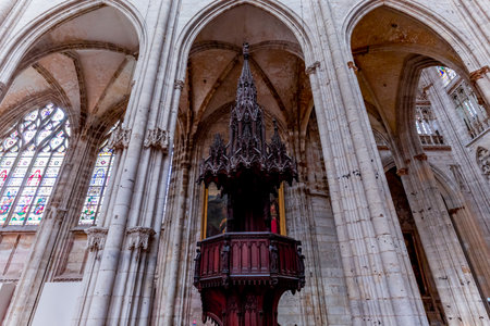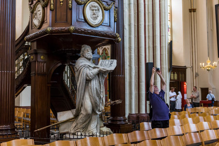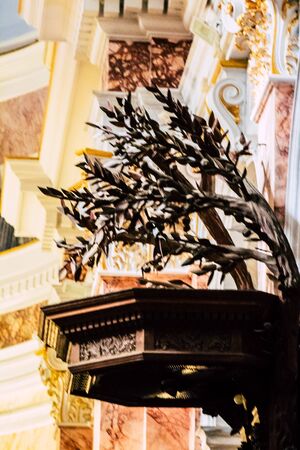 This gorgeous church pulpit podium designed in a church in Ghent, Belgium, Europe