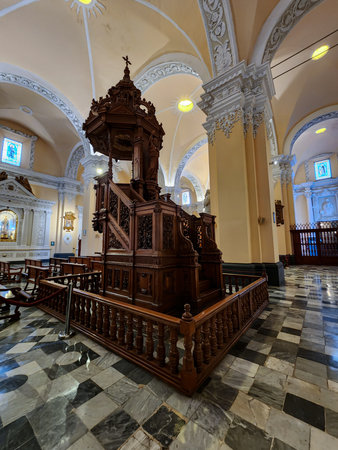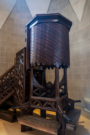 Barcelona, Spain - November 30, 2023: Pulpit in the Museum of the Sagrada Familia or Church of the Holy Family, Catholic church designed by Catalan architect Antoni Gaudi in Barcelona, Catalonia, Spain