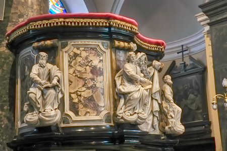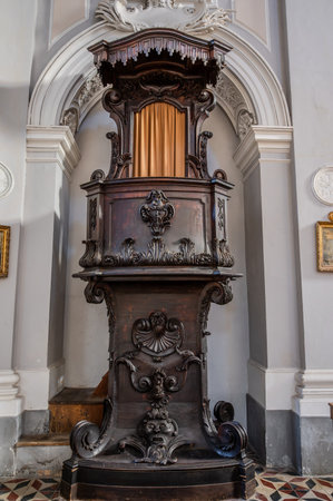 BERGAMO, ITALY - MAY 22, 2019: Wooden ambon in the Catholic Church of Sant Agata nel Carmine in Bergamo.