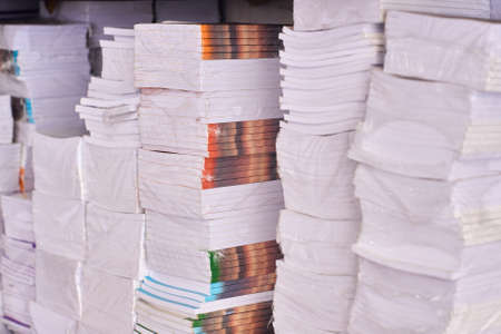 Stacks of paper napkins in the store. High quality photo