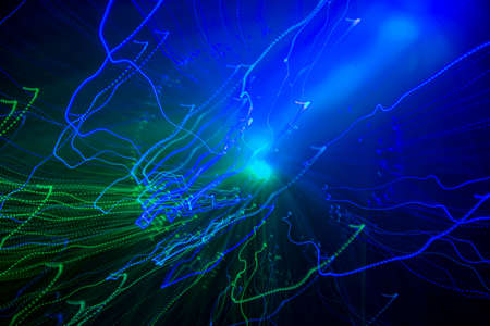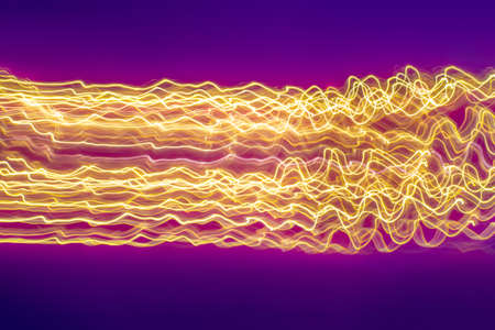 Dynamic motion blur of light trails resembling lightning on a dark background