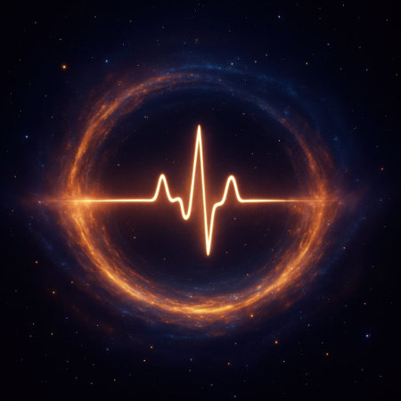 A digital representation of heart rate is displayed with a glowing pulse line fluctuating in a rhythmic pattern against a dark background, conveying a sense of life and vitality.