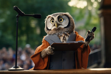 An AI generated owl perching on a tree branch