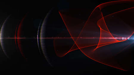 Red line wave on right side with small particle dots. Abstract background illustration. Copy space, 3D rendering