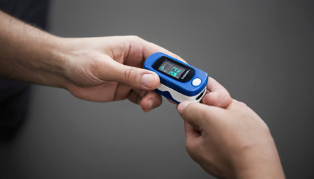 A man checks his oxygen level using an oximeter