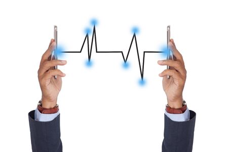 Signal wave from smartphone to smartphone conecting together on white background.