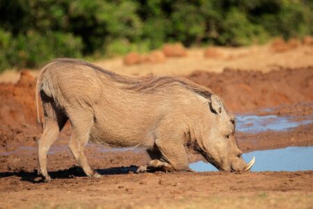 A warthog Phacochoerus africanus drinking water, South Africa