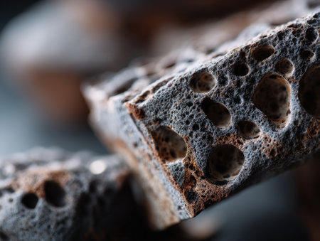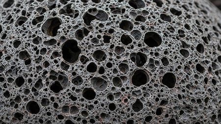 Explore volcanic rock texture with its unique porous surface ideal for geology enthusiasts or science education materials