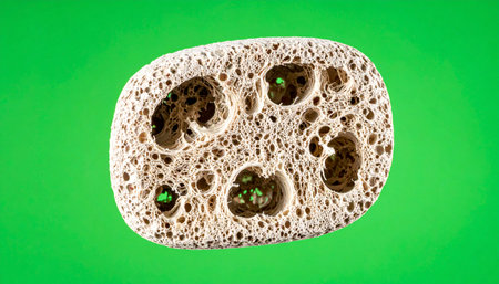 A detailed macro view of a bone cross-section, revealing its intricate and porous cancellous structure.