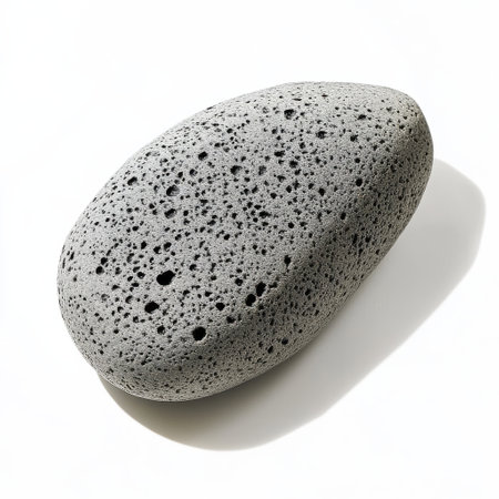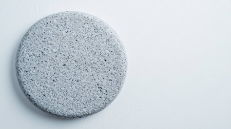 Minimalist gray pumice stone on a clean white background for spa treatments, skincare, and relaxation, emphasizing natural beauty and wellness