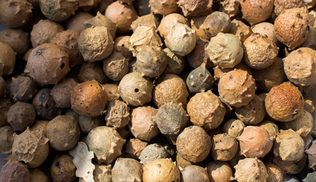 Ceylon oak fruit on black dish (Schleichera oleosa (Lour.) Oken)