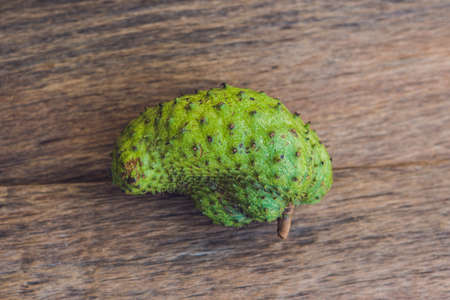Guanabana on an old wooden background - exotic tropical fruit - regional fruits from Vietnam.