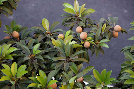 Sapodilla as the local balinese kiwi growth on the tree with brown skin fruit color