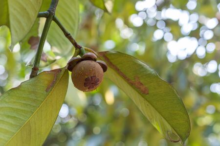 Mangosteen on mangosteen tree is a queen of fruit in Thailand and asia fruit have a sweet can buy at Thai street food and fruit market at agriculture farm