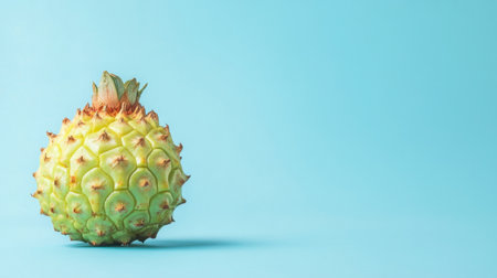 A fresh pineapple sits on a soft blue background, offering a vibrant and healthy vibe. Ideal for food-related themes, wellness, and tropical imagery.