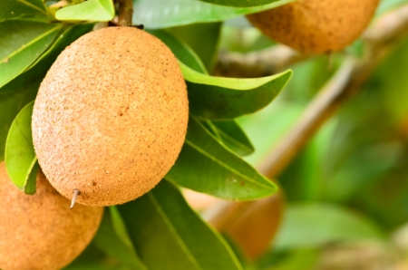 Sapodilla fruit on tree in the garden, Thailand.