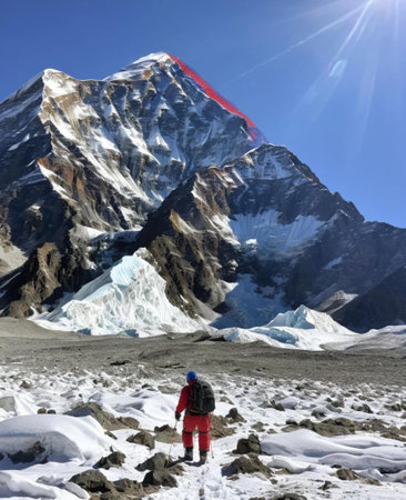 khumbu valley, khumbu glacier and pumo ri peak - nepal