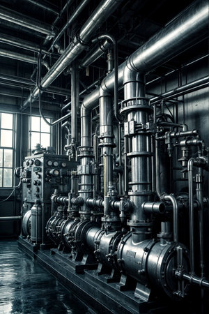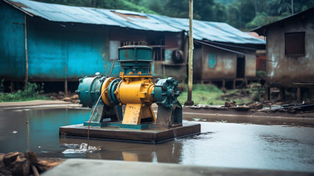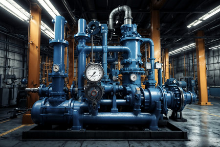 Generative AI Powerful industrial pump with part of the pipeline.