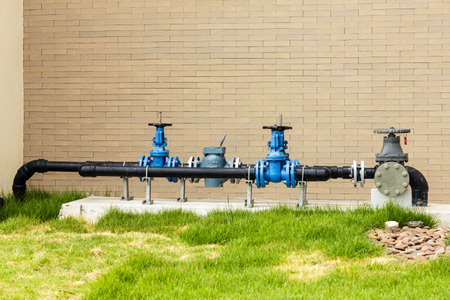Water pipes joined with valves of the water supply system on a street