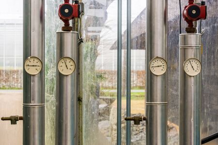 Pipelines with heat pressure meters, Modern industrial equipment