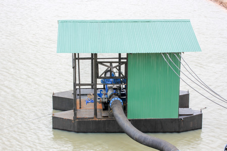 Blue water pumping station in garden