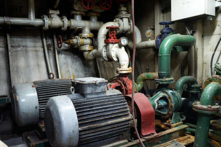 Panoramic view of electric motors on a merchant ship