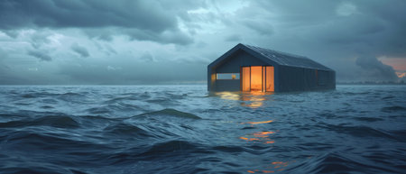In the heart of climate resilience, extreme weather shelters offer refuge, a beacon in floods turmoil. hyper realistic