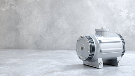 This image showcases a modern electric motor resting on a gray concrete surface, highlighting its sleek design and industrial functionality suitable for various applications.