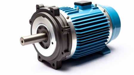 High-precision industrial blue electric motor with chrome housing, symbolizing innovation, power, and advanced engineering technology.