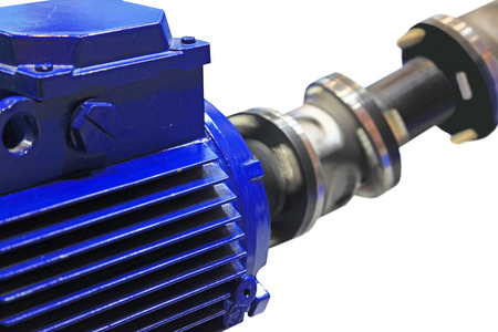 The motor rotates the shaft through cardan transmission. Isolated on white background