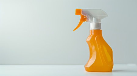 A high angle shot of a plastic spray bottle isolated on a yellow background