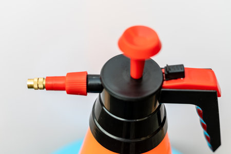 Pump Spray nozel Red Spraying detail macro. High quality photo