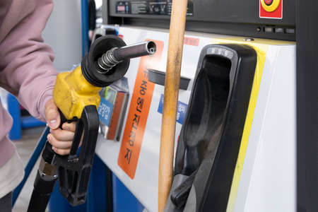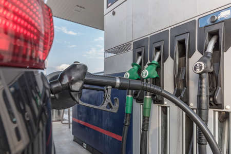 Refueling gasoline or diesel at the gas station in the fuel crisis due to high prices
