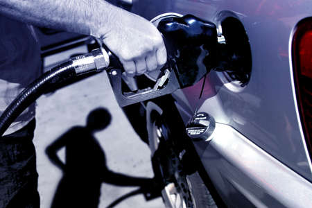 refueling of a car with gasoline at a gas station