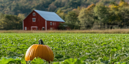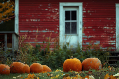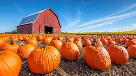 Rustic Barn and Pumpkin Patch in Autumn Harvest Scene