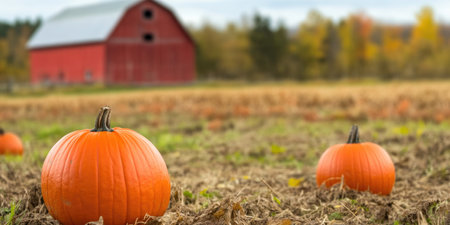 Rustic Barn and Pumpkin Patch in Autumn Harvest Scene