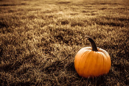 Orange pumpkins in the field for hallowen and fall background
