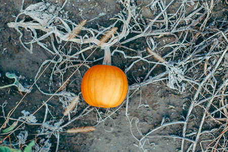 Autumn pumpkin in the dirt