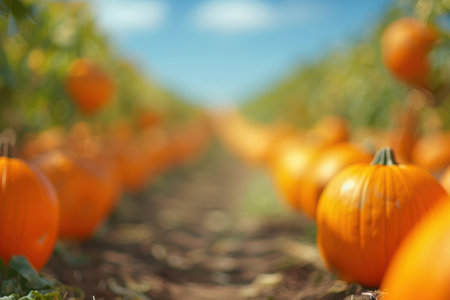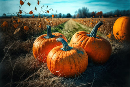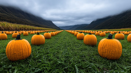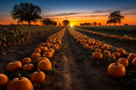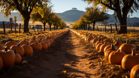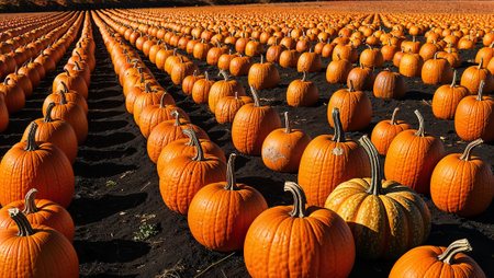 Rows upon rows of pumpkins fill the field, offering a bountiful harvest view. AI generated image