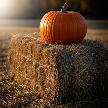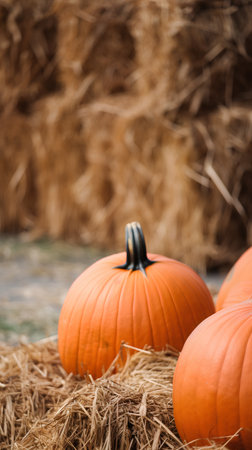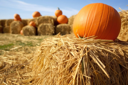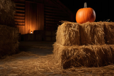 pumpkin placed beside stacked hay bales, created with generative ai